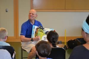 At his first show, O’Neill’s sharp improv talents, developed by decades in the broadcasting industry, had parents laughing as hard as their children. With a charismatic blend of Patrick Stewart’s booming voice and Jim Carrey’s comedy, O’Neill proved his genius for getting kids of all ages to participate, laugh, and revel in a good book.