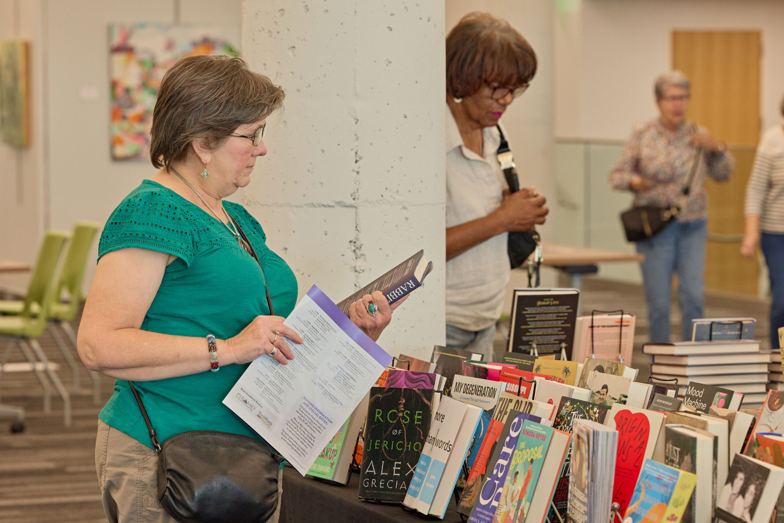 The Galleries & Bookstore at Library Square are officially closed to make way for Mini Main. In order to disrupt as few services as possible during the renovation, the space where the Bookstore lived will be used for essential library services for the duration. We are sad to see the space go, but take heart, the entire staff will remain at CALS in a variety of positions. Here is a rendering of what we anticipate that space will look like and how it will be used. The research portion of the Bobby Roberts Library will remain open and unchanged.